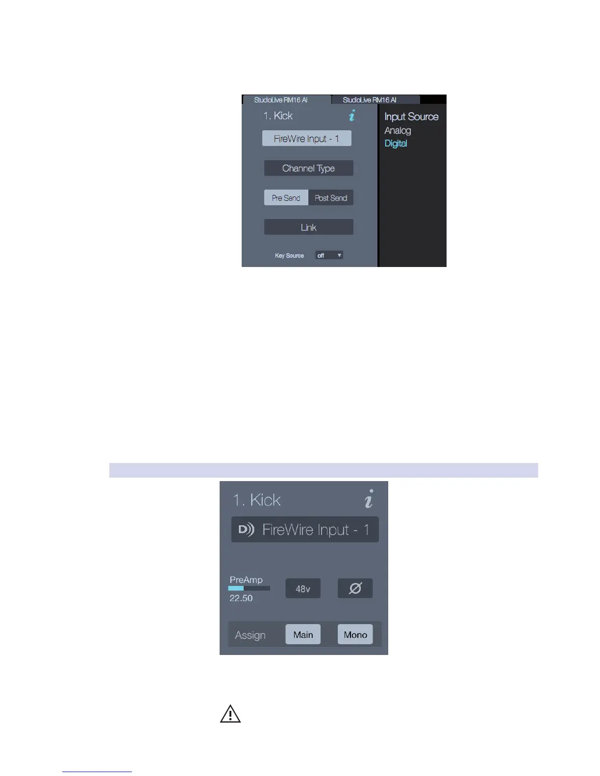 +48V Button. When active, this button provides 48V phantom
