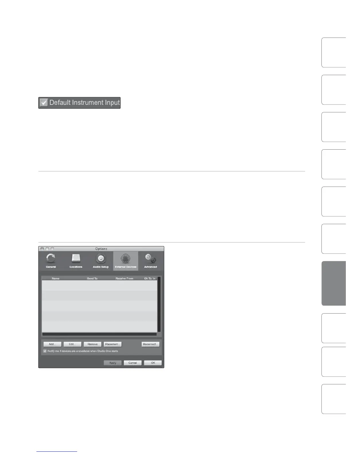 1. You can set up your external MIDI devices from the