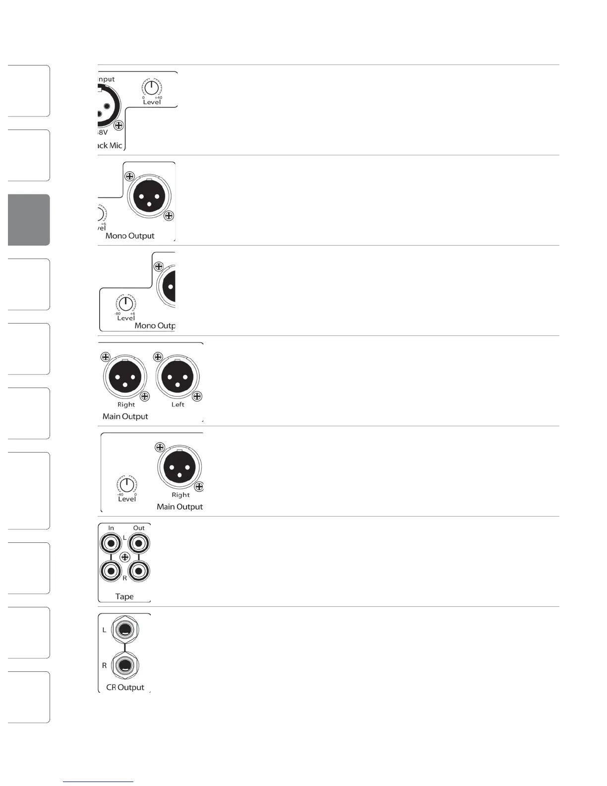TRS main outputs. The signal can be attenuated to -40 dB and boosted up to 0 dB.
