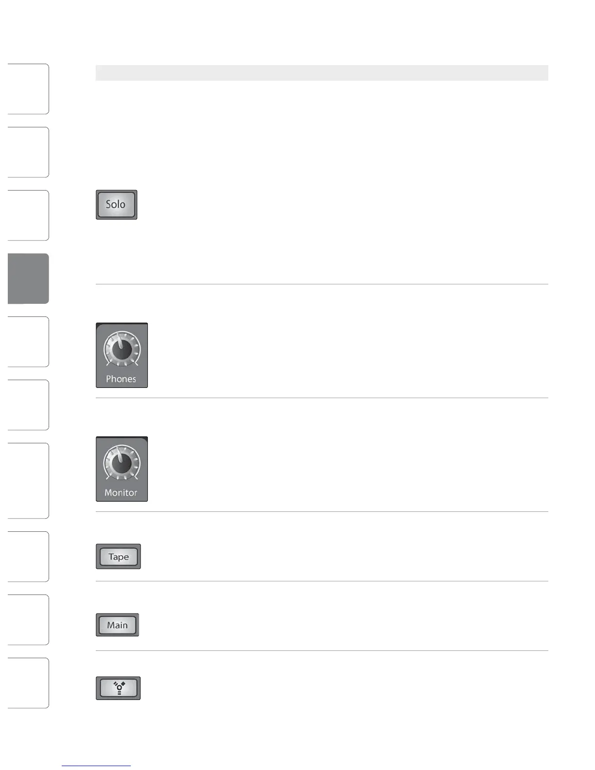 The Tape monitor button routes the signal from the tape inputs (tape returns) to the