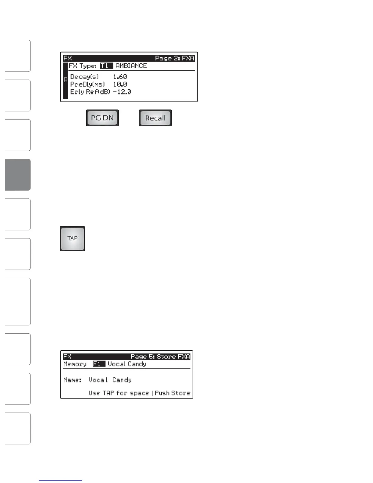 the rst screen of the FX menu. The Tap button does not function when any other
