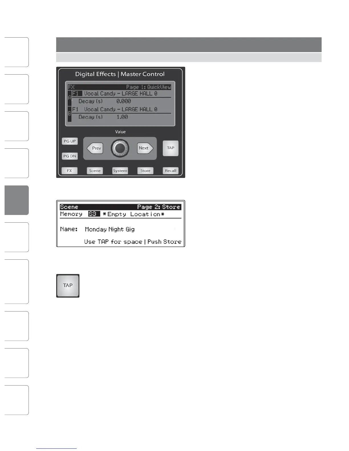 To save a Scene, press the Scene button and page