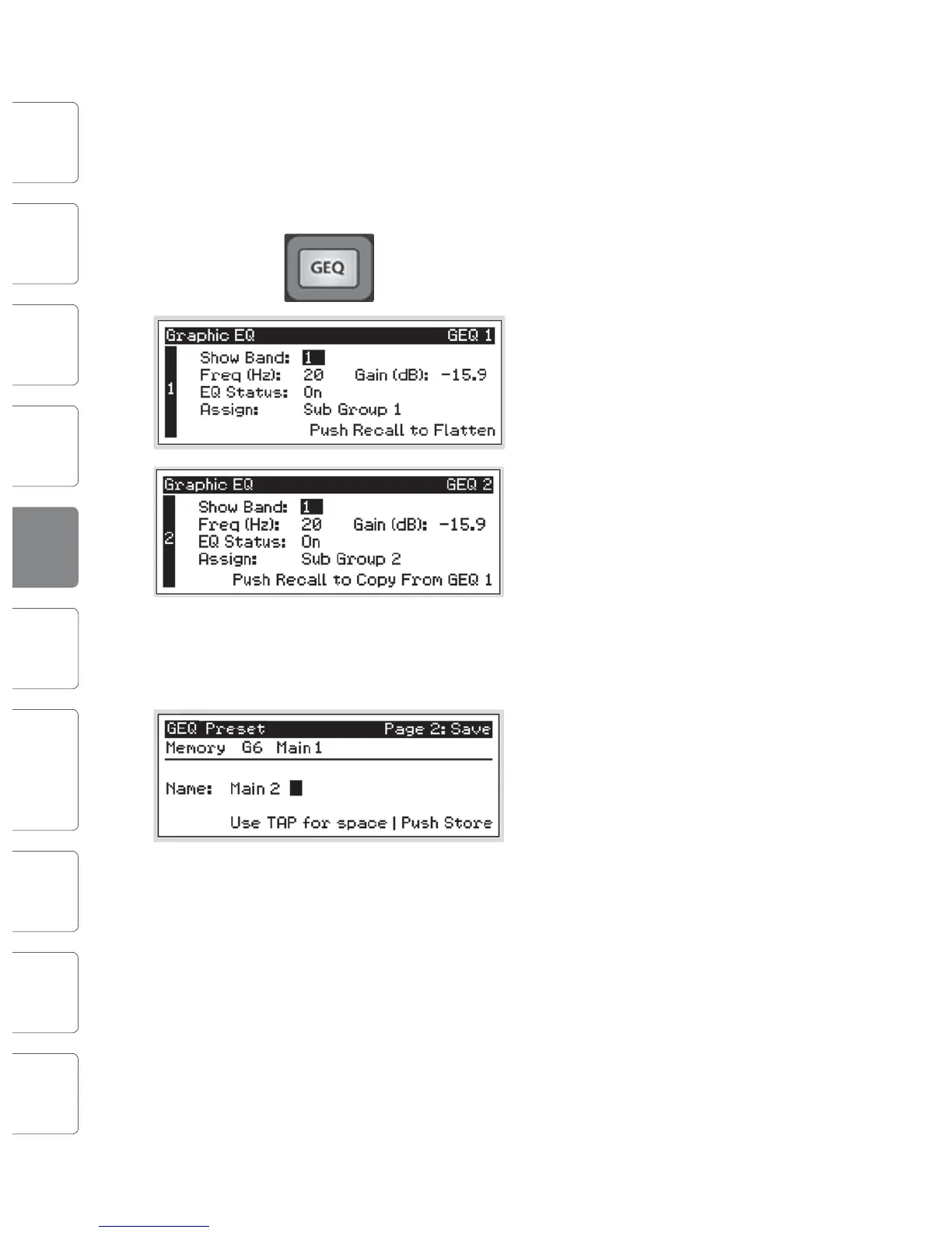 the GEQ preset is saved, the Store button will return to its unlit state.