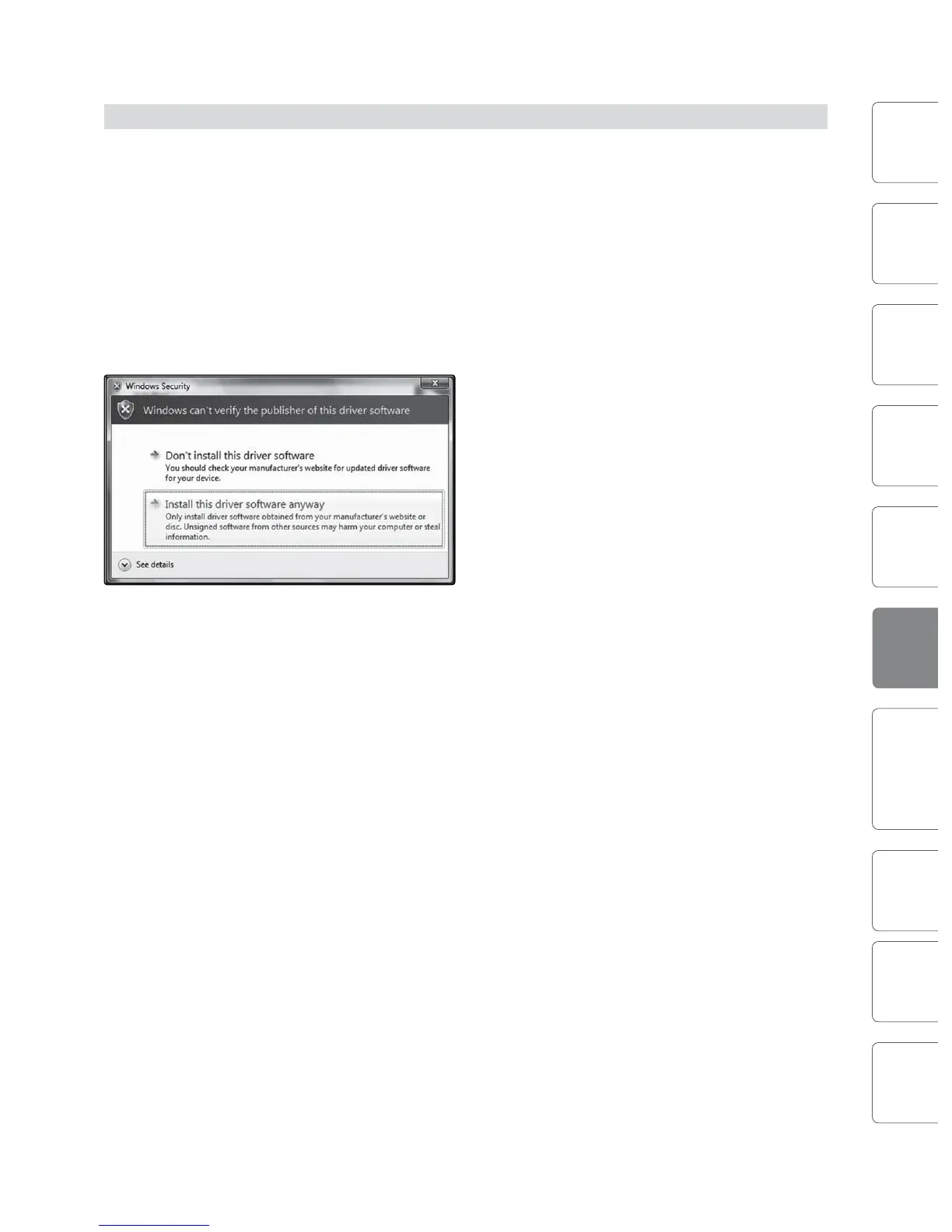 this driver software anyway” (Vista) or “Continue