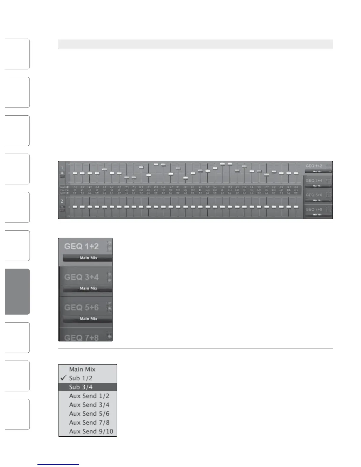 Along the right side of the GEQ tab, you will see another set of tabs, one