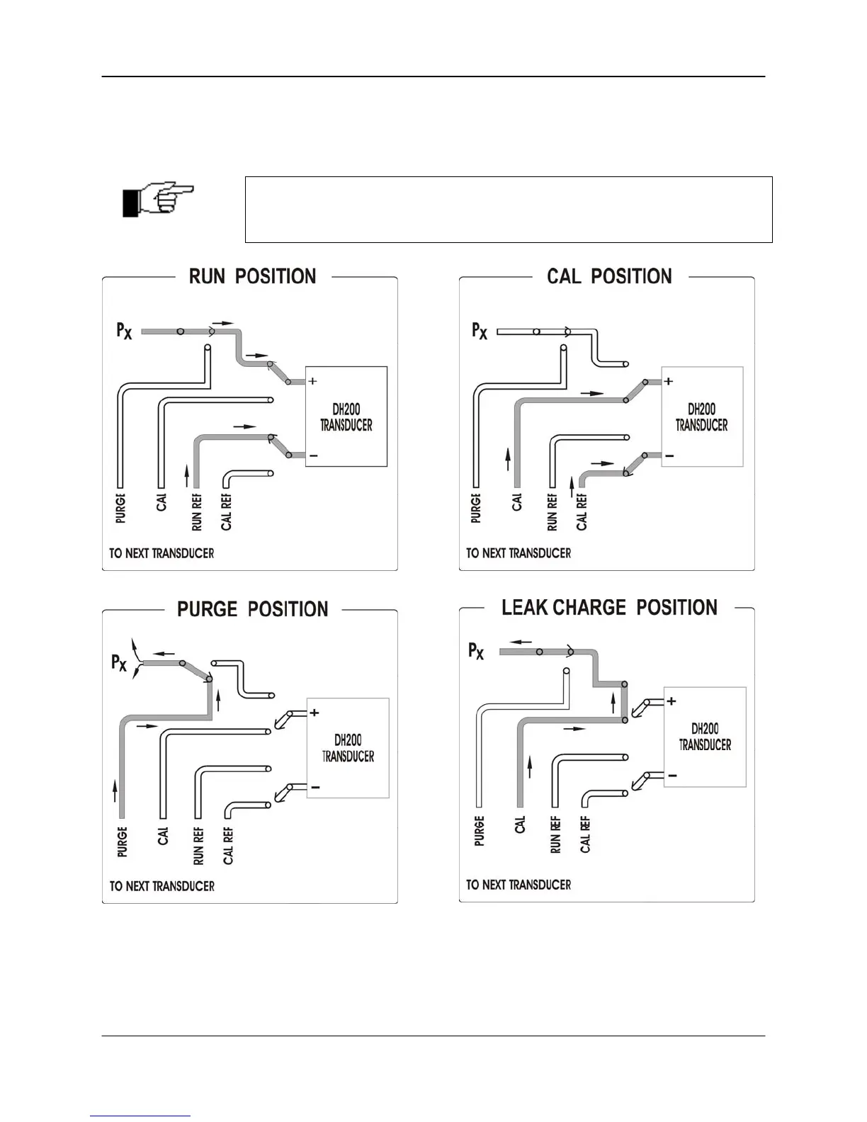4.4 show simplified pneumatic diagrams of the calibration manifold in its various