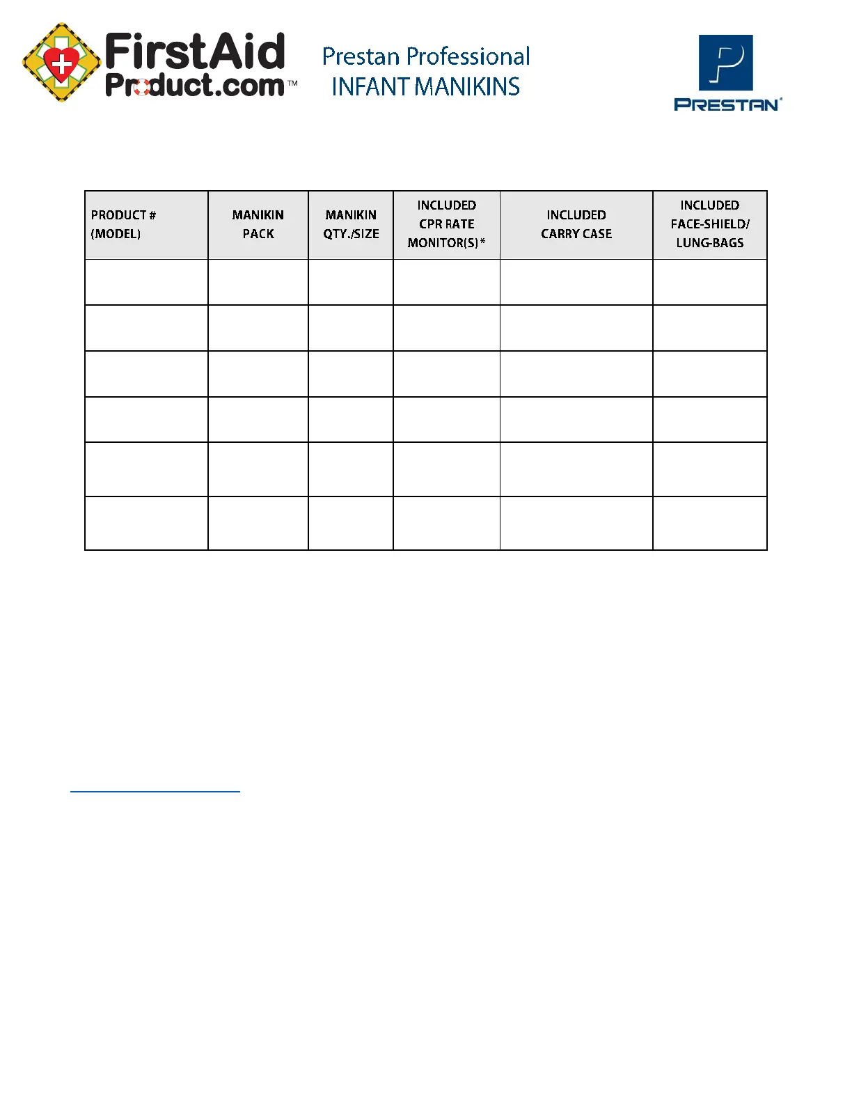 ** The Prestan Collection and Prestan Family Pack also include Prestan Professional Adult and Child Manikins.