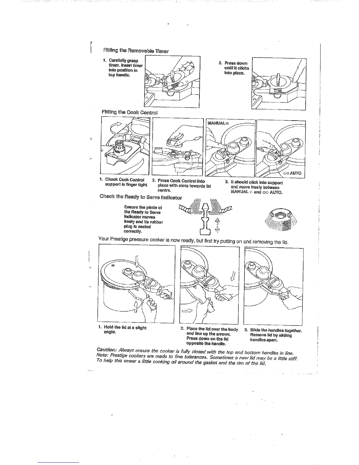 Prestige 2025 - Assembly and Initial Setup; Fitting the Timer and Cook Control; Lid Operation and Indicator Checks