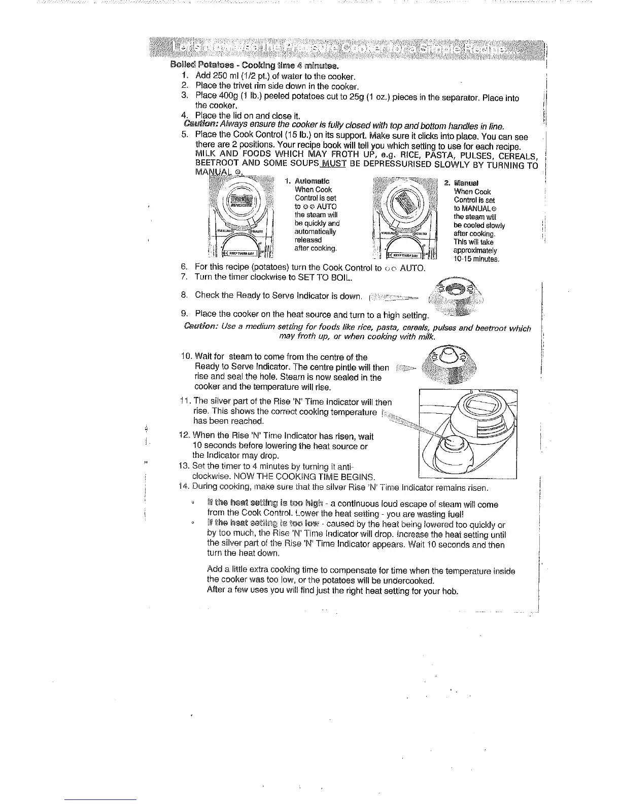 Prestige 2025 - Operating the Cooker: Recipe and Indicators; Cooking Example: Boiled Potatoes; Understanding Indicators and Heat Control