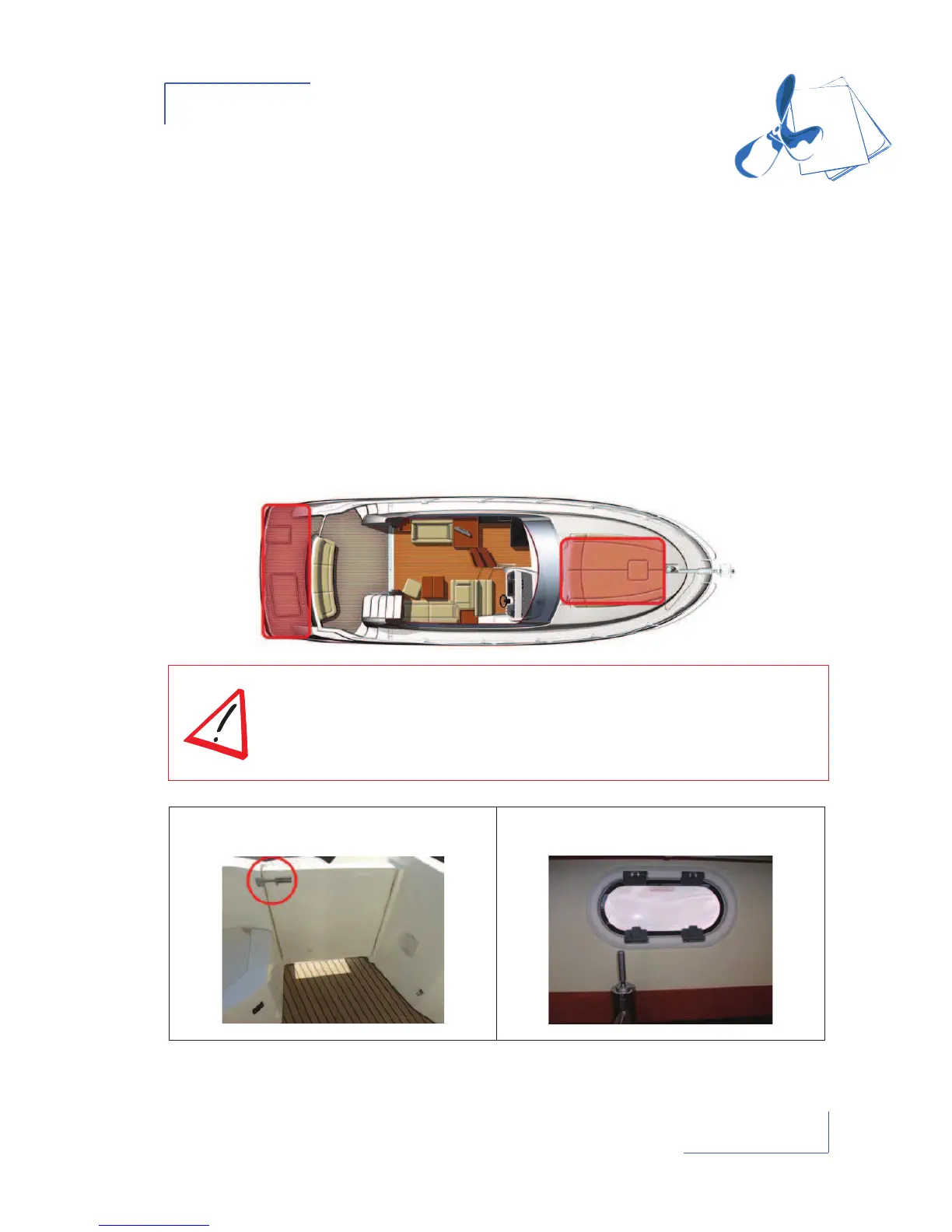 - The parts of the deck which should not be used while under way are indicated on the