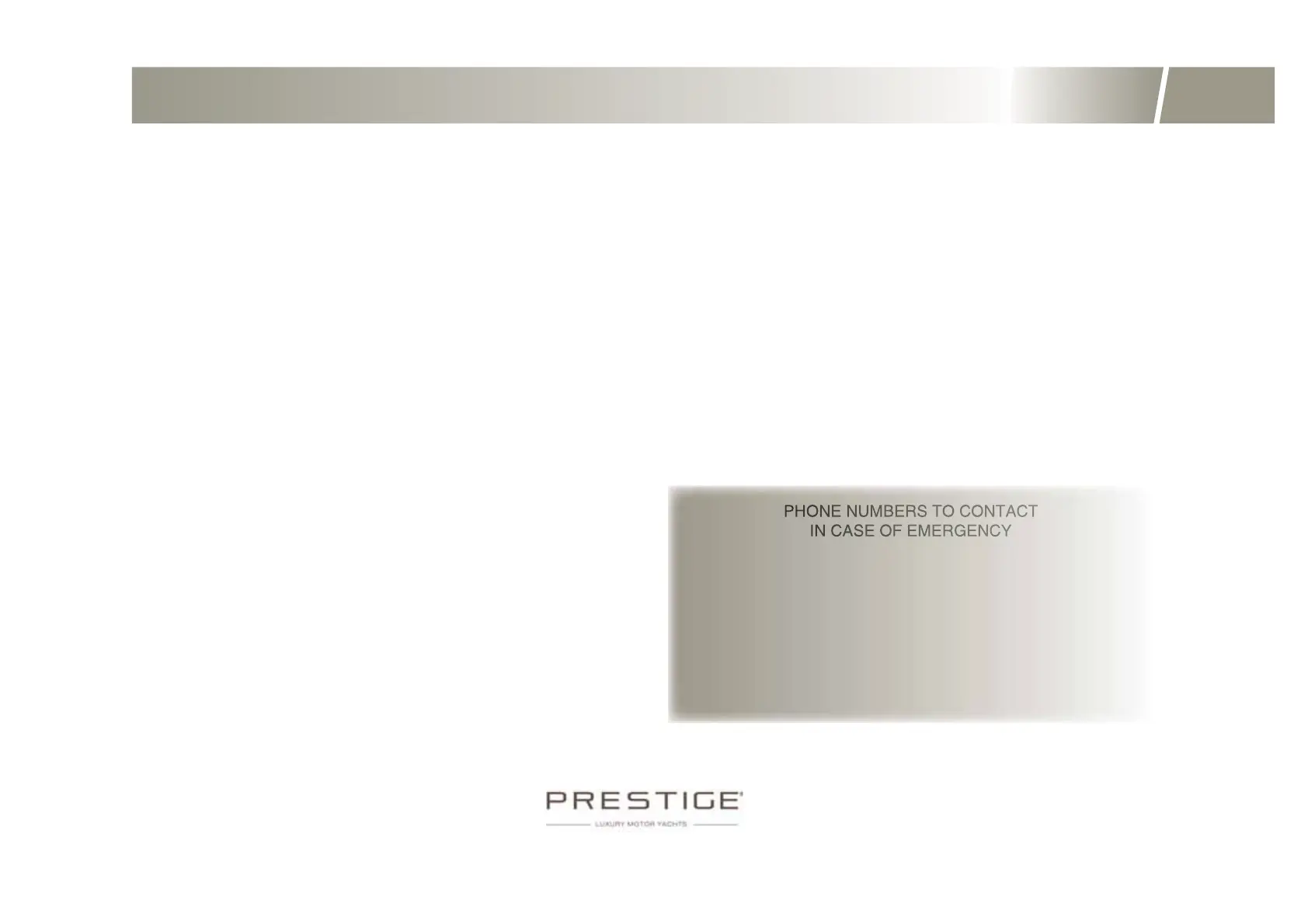 BP 529 - 85505 LES HERBIERS CEDEX - FRANCE - TEL +33 (0)2 51 64 20 20 - FAX +33 (0)2 51 67 37 65 - www.prestige-yachts.com