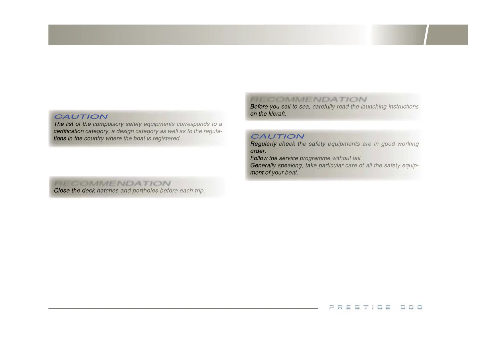 Before you sail, list the compulsory safety equipments.