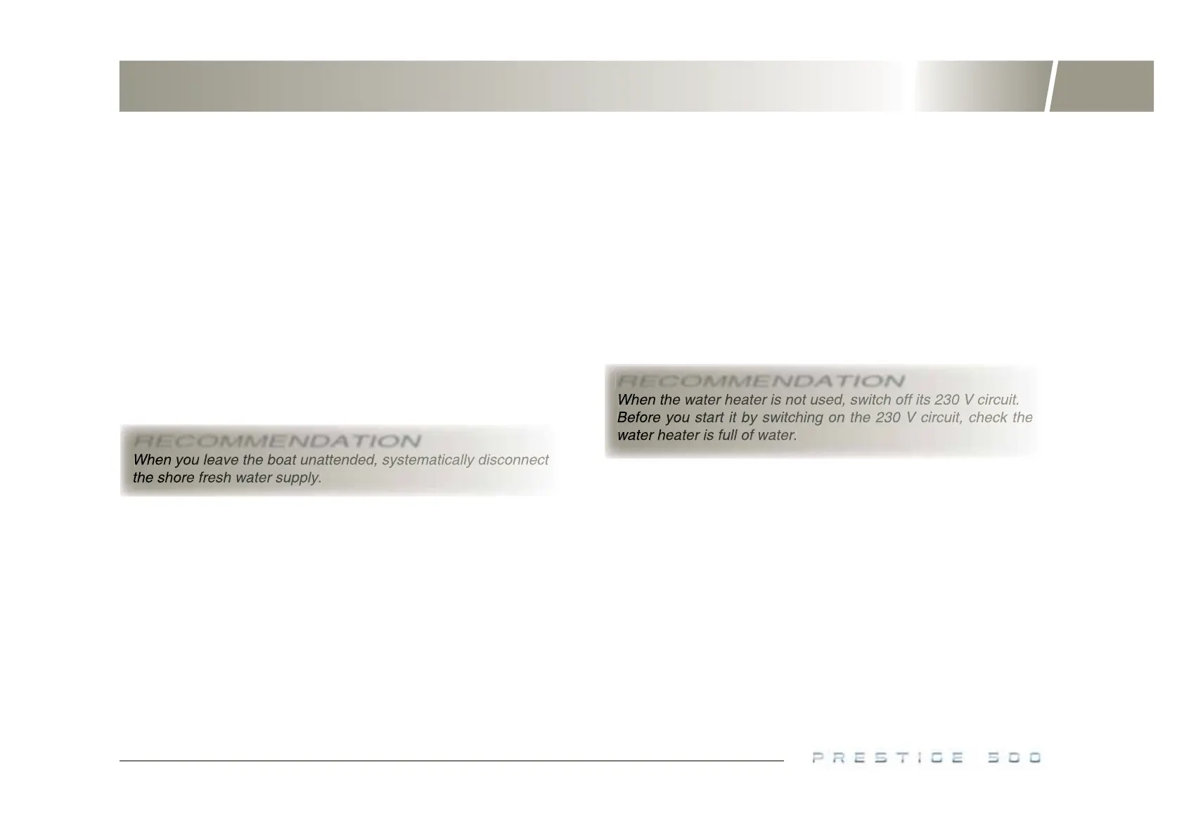 The water heater works automatically once the engines are running, or on 230 V