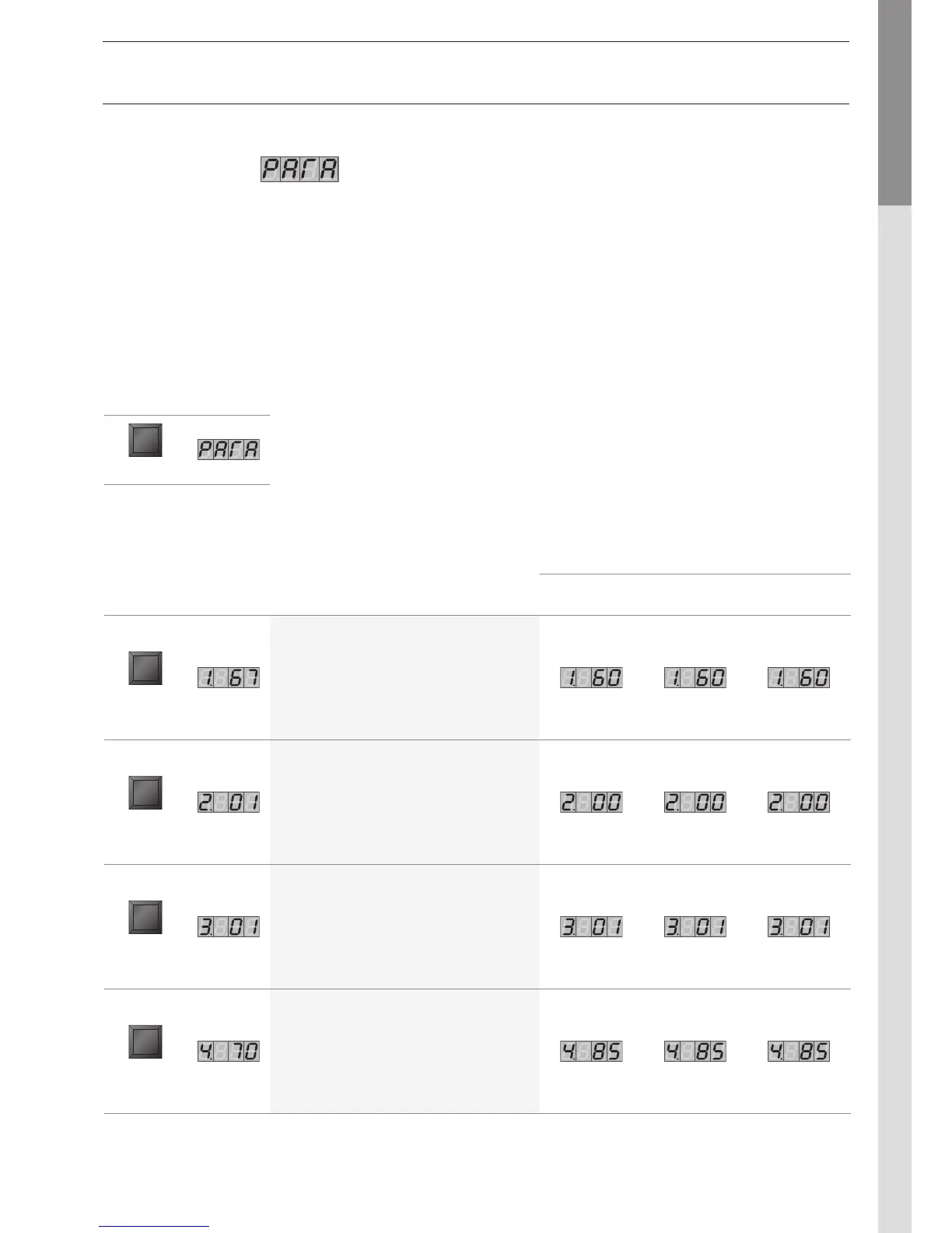 Key Display Description of the parameters