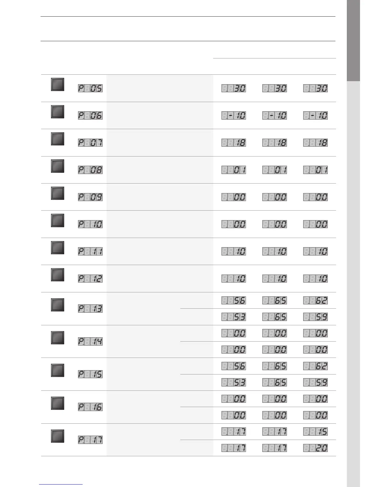 Key Display Description of the parameters