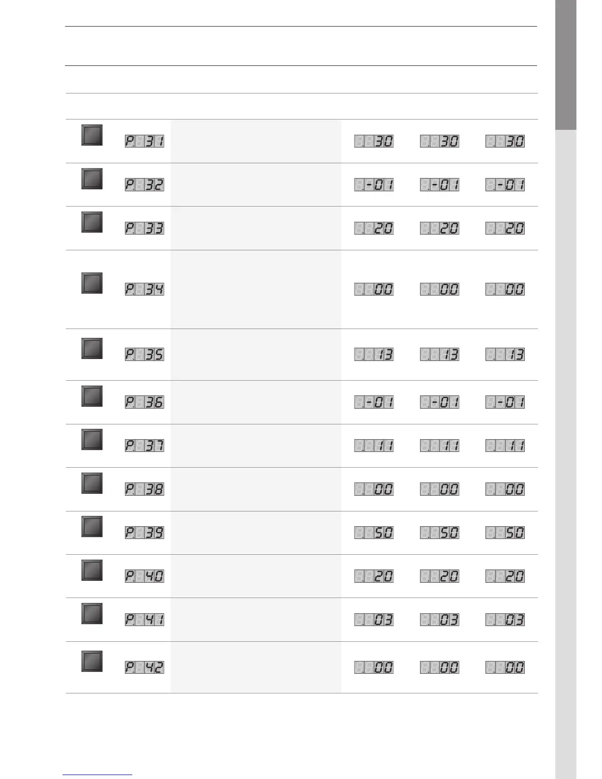 Key Display Description of the parameters