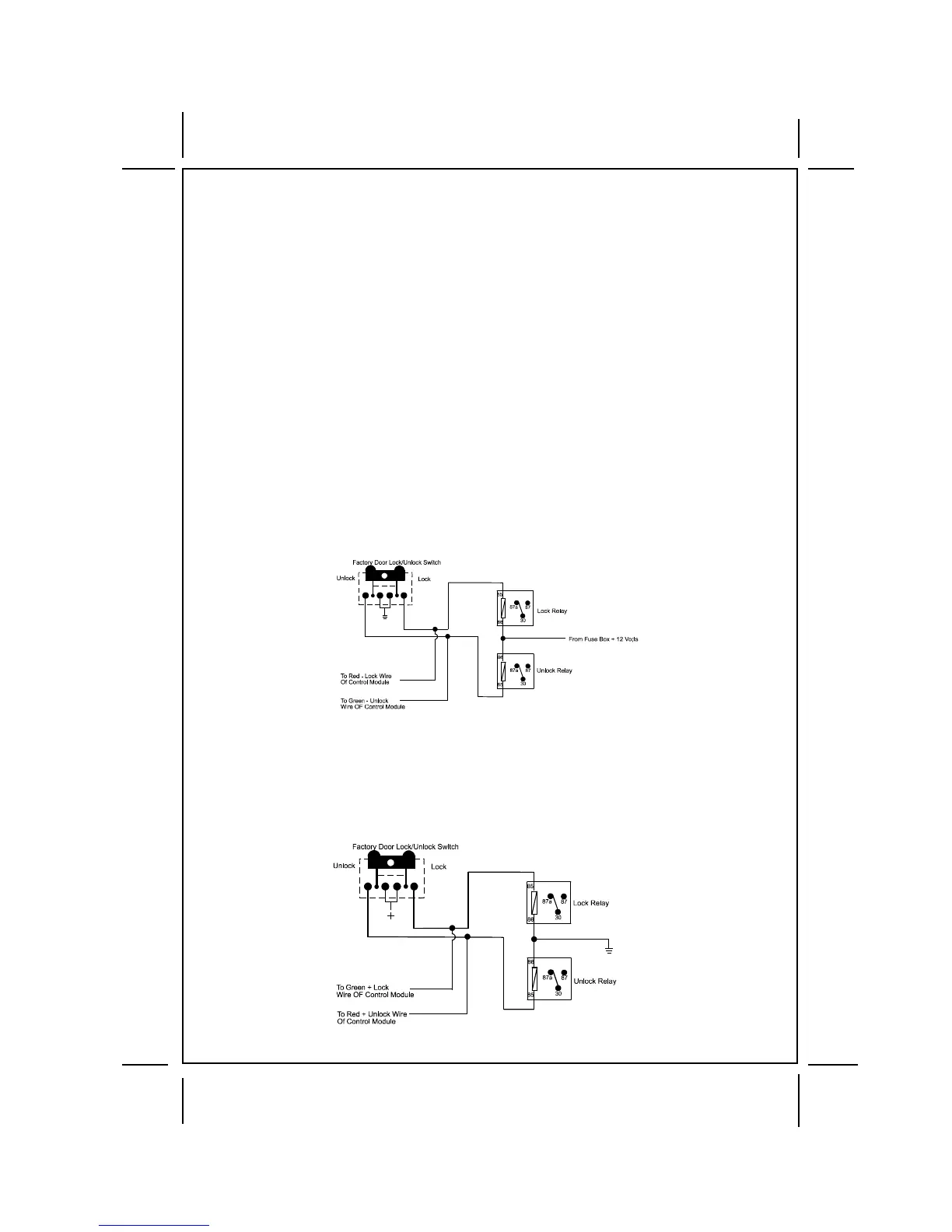 door lock circuit of the vehicle you are working on and wire according to the diagrams shown.
