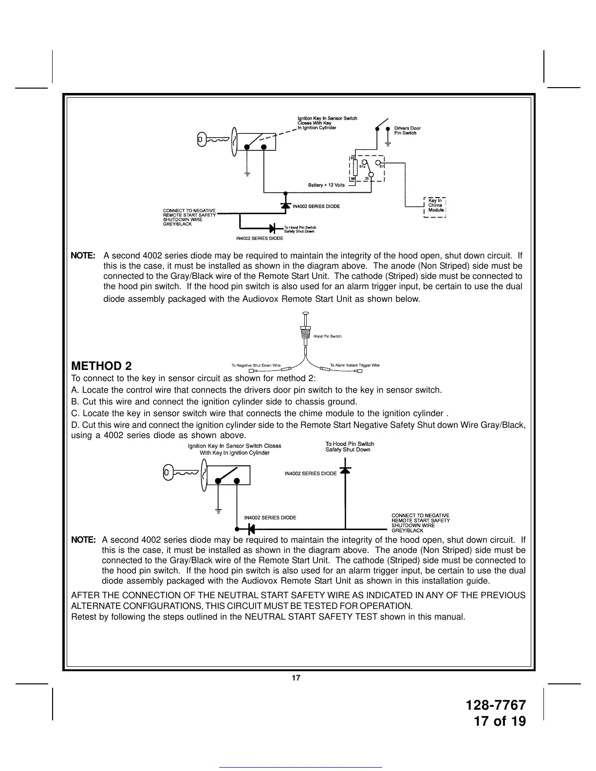 diode assembly packaged with the Audiovox Remote Start Unit as shown in this installation guide.