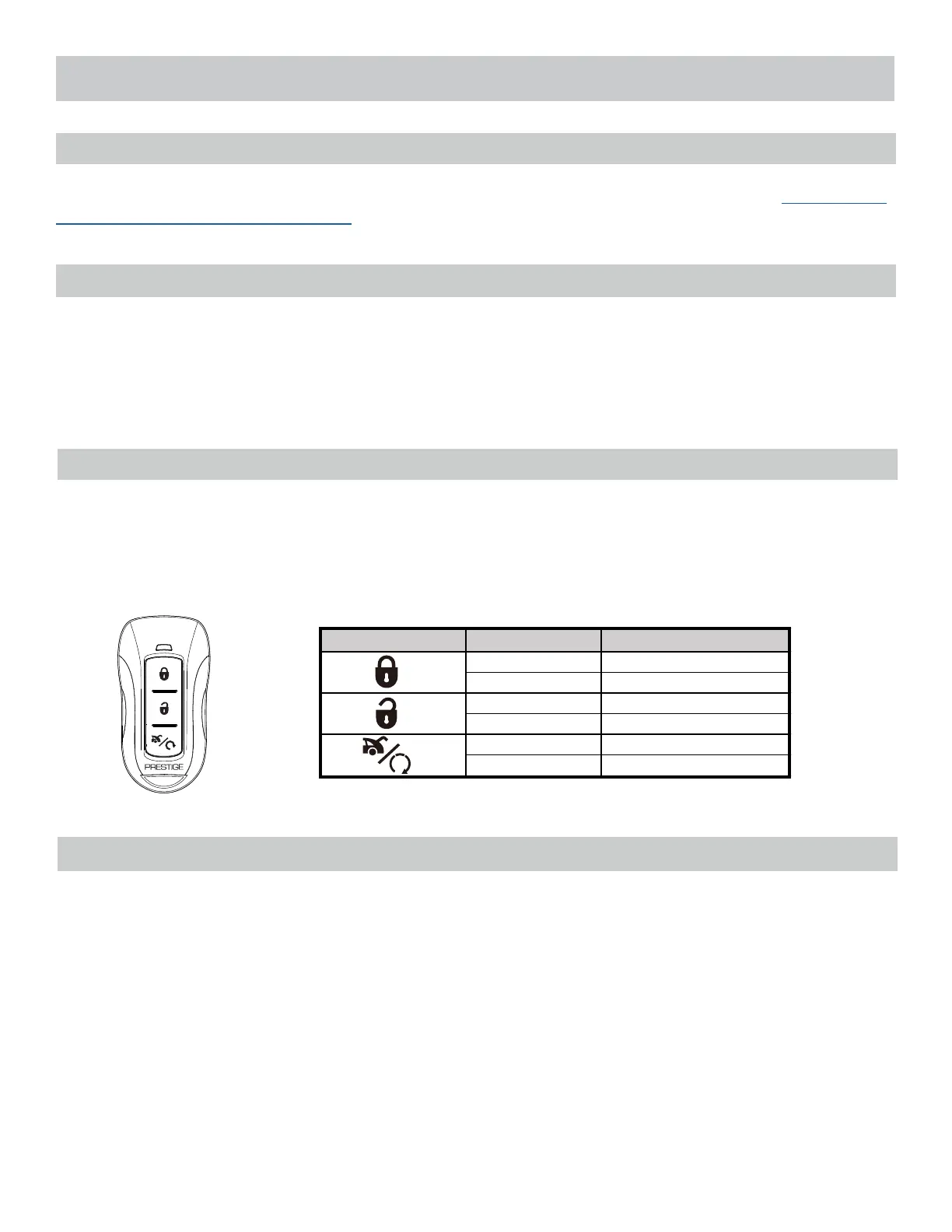 This system includes two (2) 1-Way three (3) buon remotes. The matrix below describes the basic funcons of each