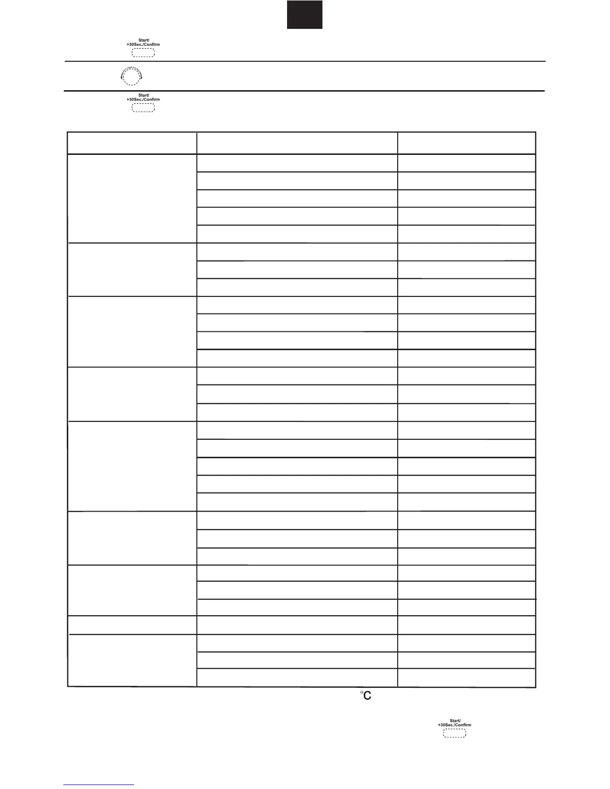 Note: Cake menu is under convection cooking with 160 -warm-up function, you should