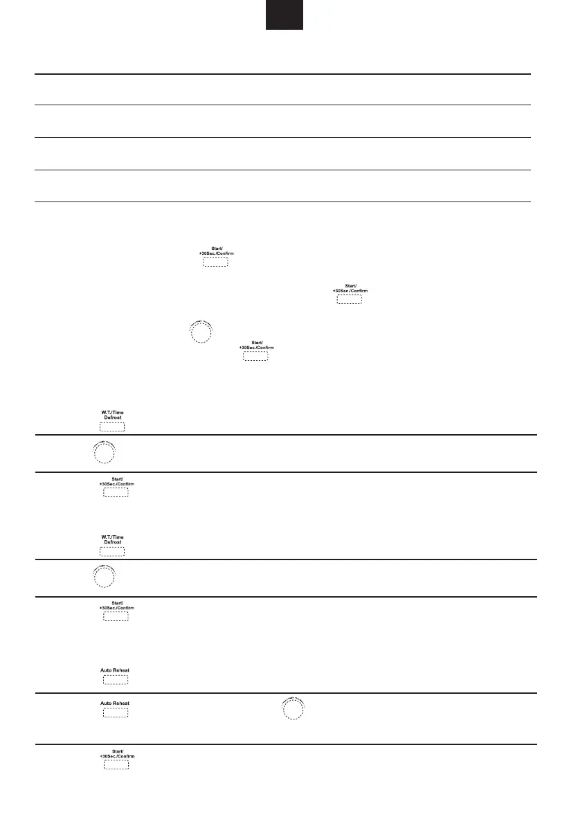 Note: Auto menu and weight defrost cannot be set here.