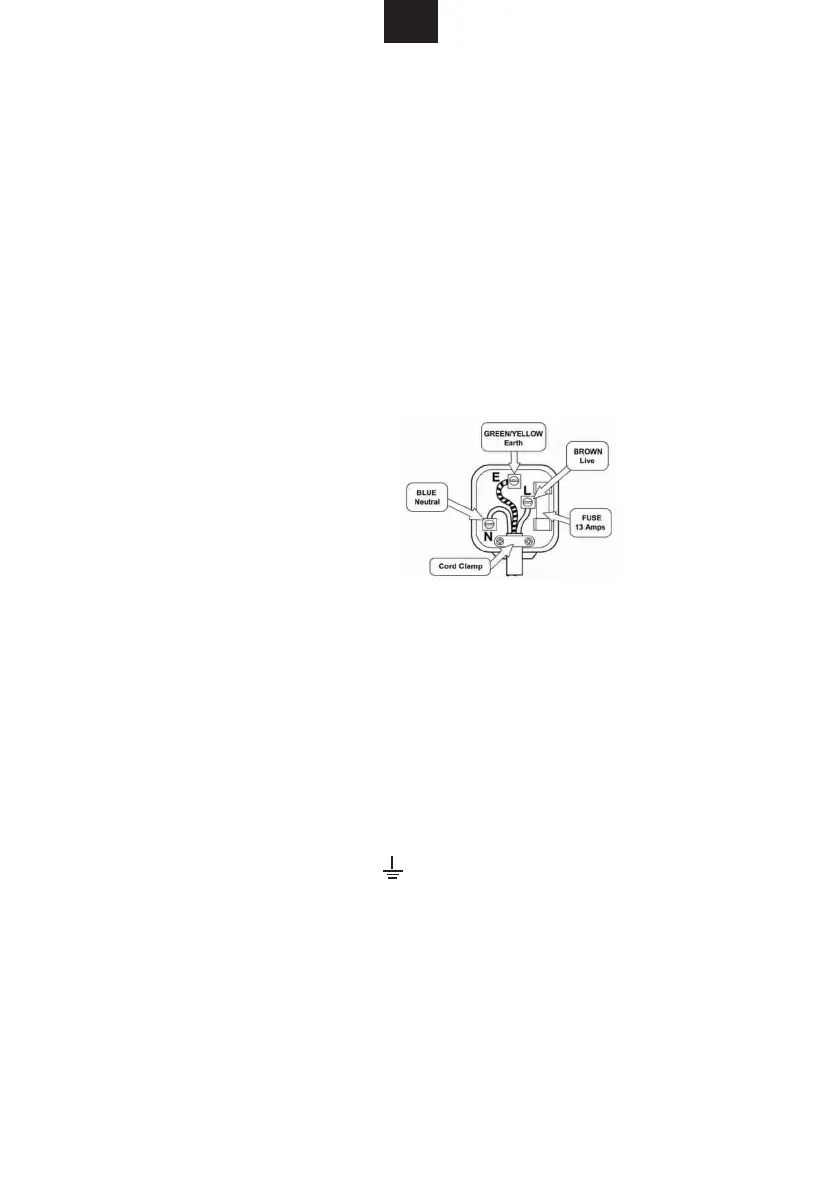The appliance is supplied with a rewireable 13 amp 3 pin plug fitted with a 13 amp fuse.