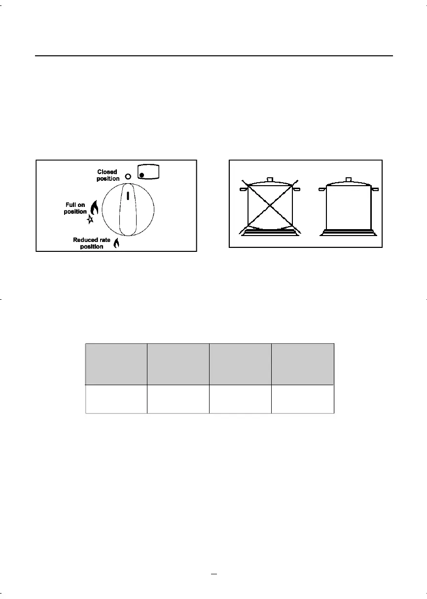 Use an appropriately sized pan and with flat bottom for each burner (see the table below