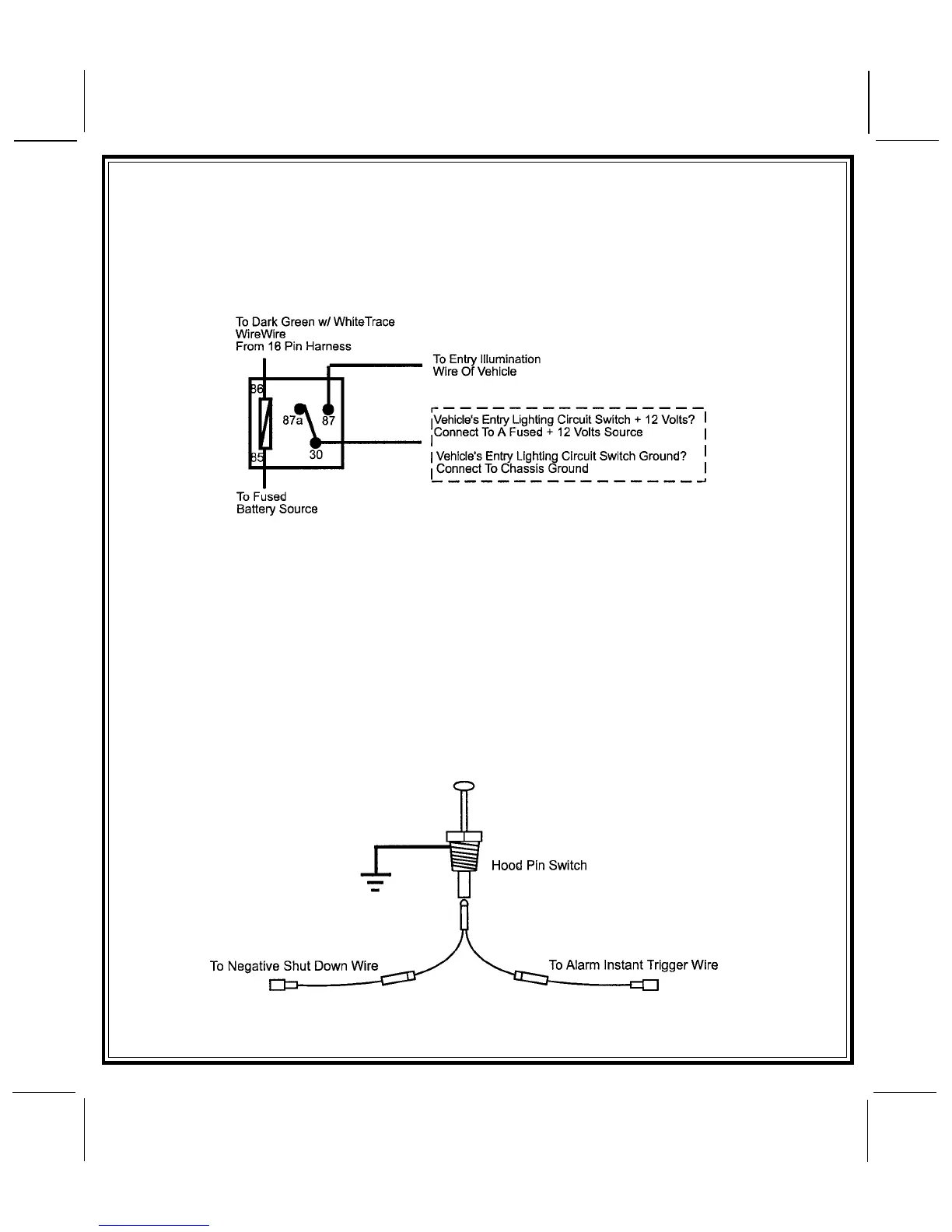 ever it is grounded. Connect the Grey w/ Black trace wire to the hood pin switch previously installed.