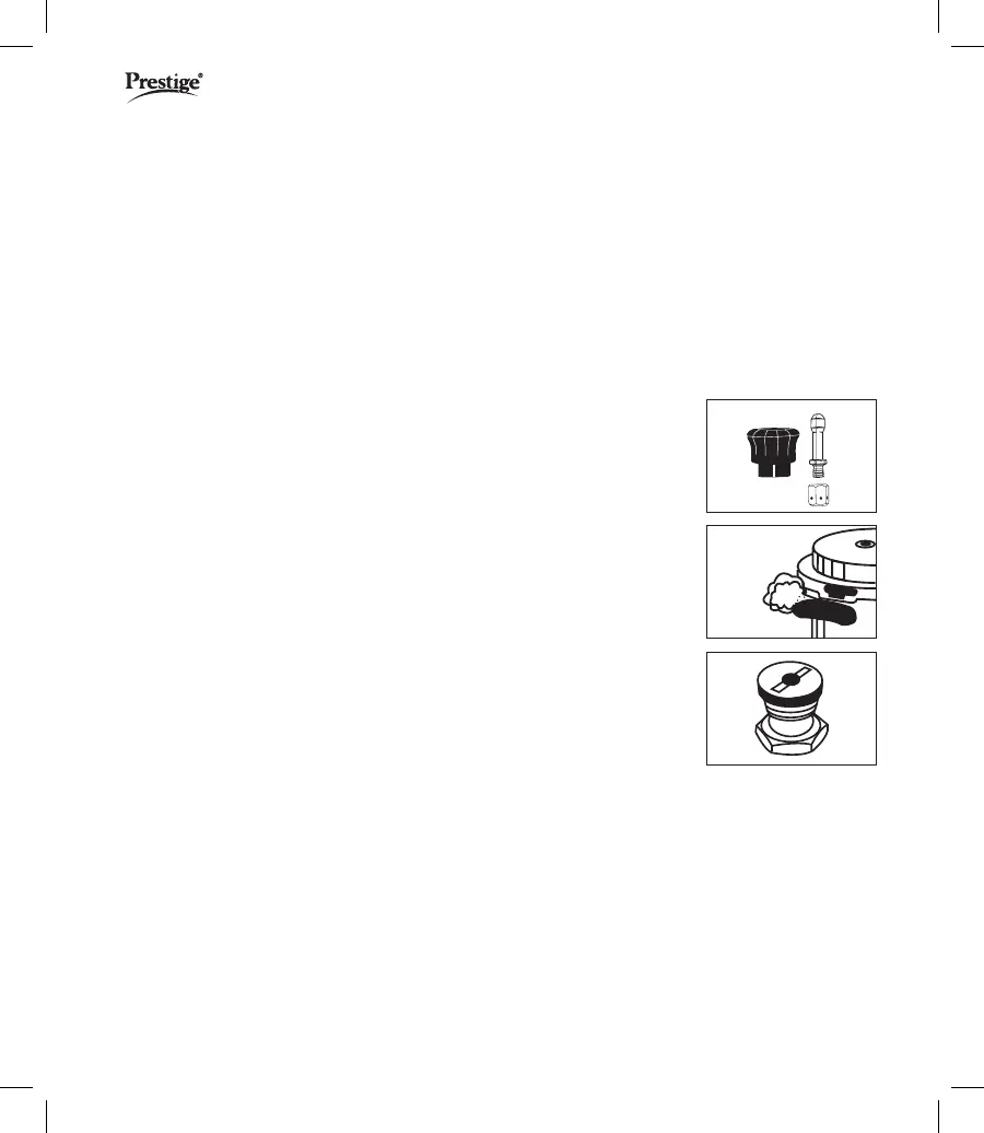 steam safely downwards. In case of 1.5 & 2 & 3 litre pressure cookers, the excess