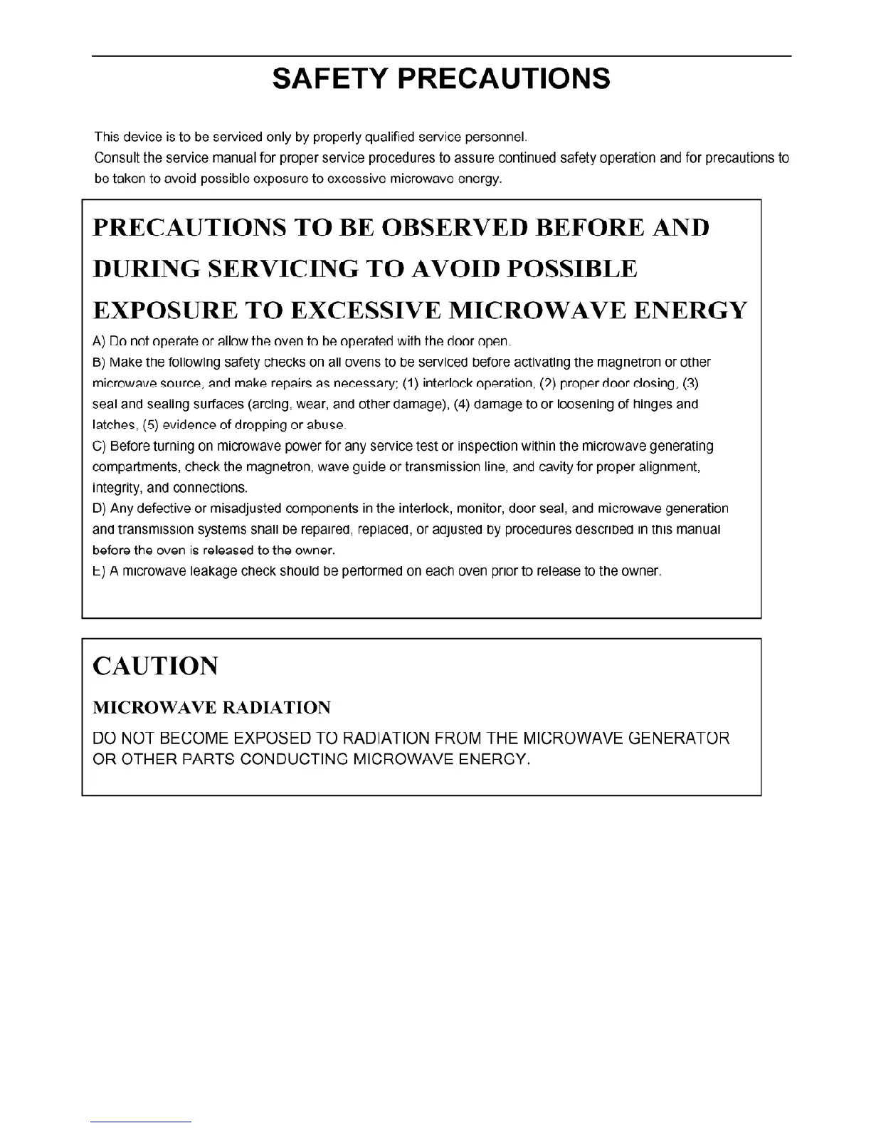Prestige PR25E - Safety Precautions; Microwave Energy Exposure Precautions; Microwave Radiation Warning
