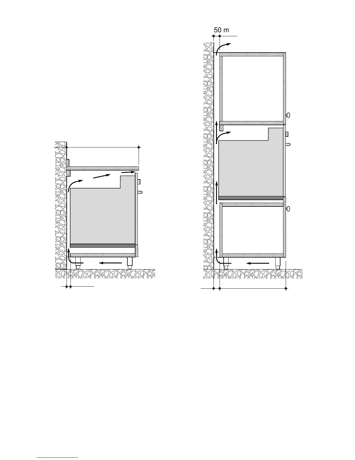 To ensure internal ventilation, aeration channels must be provided as illustrated in the