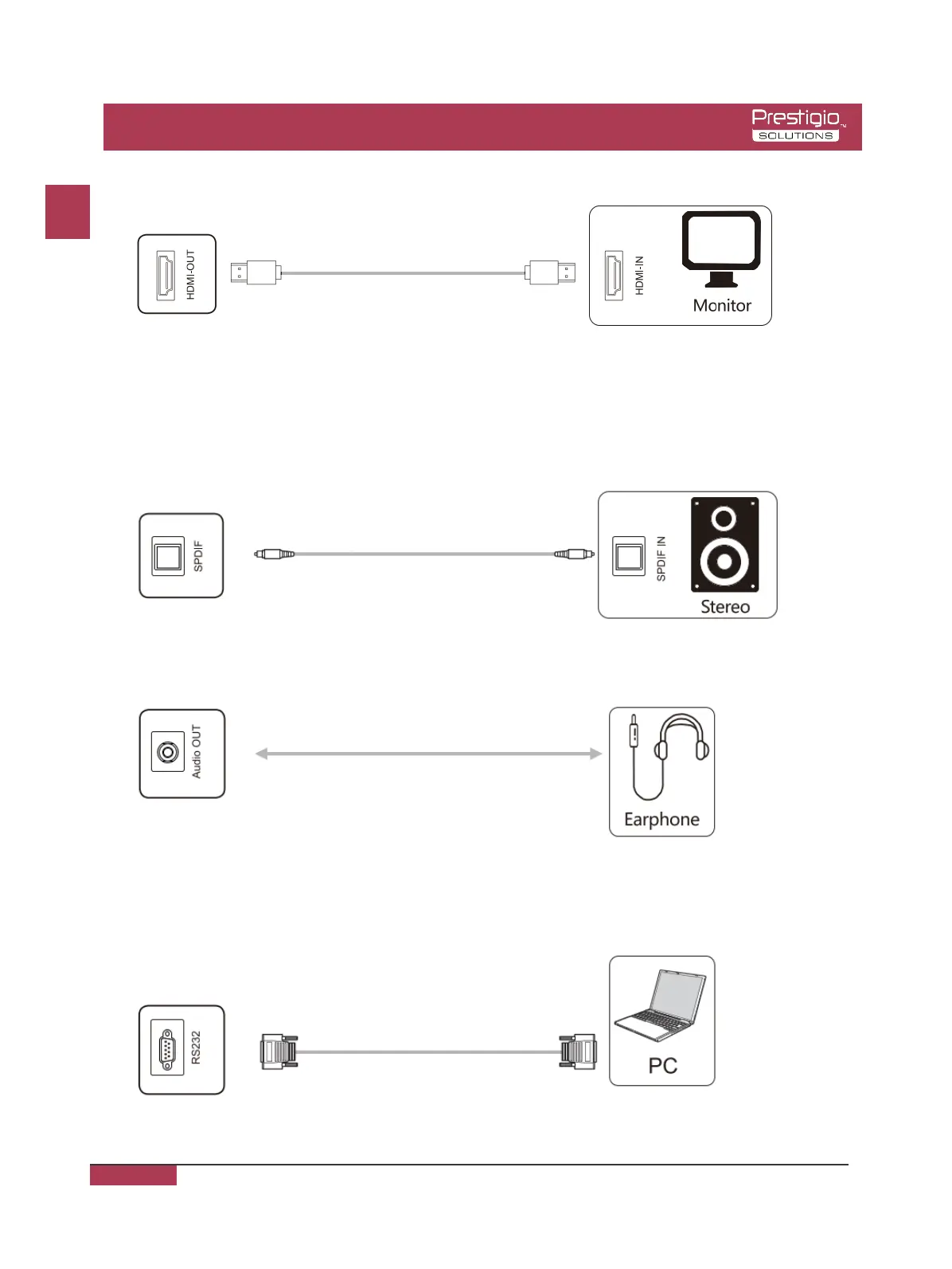 Note: RS232-IN port is connected to the PC; the product is operated via the PC.