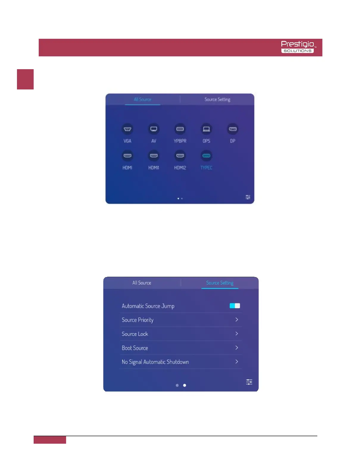 Method two: selected the side bar menu > Signal Source Settings, select signal source, and