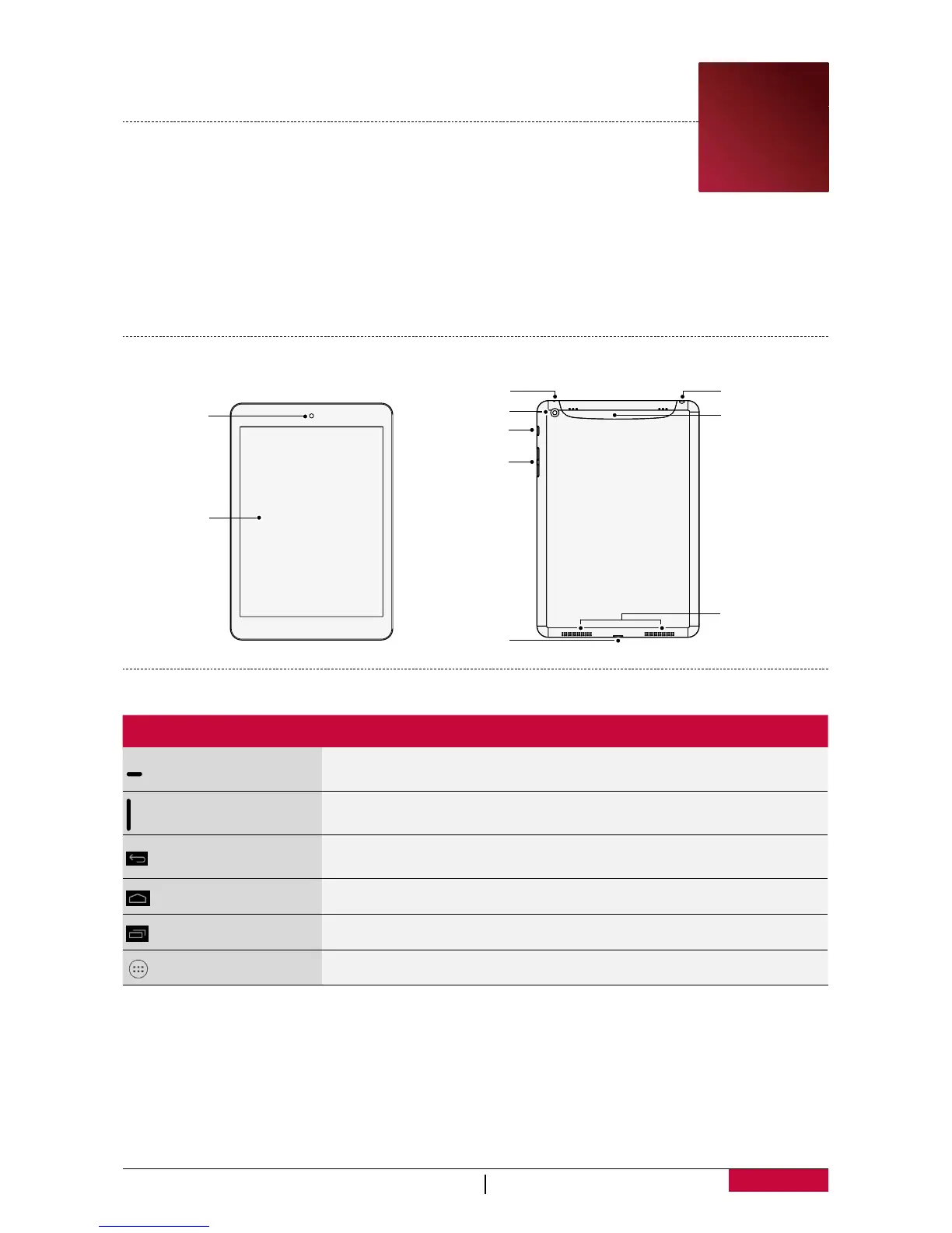• Press and hold to power on or off your tablet.