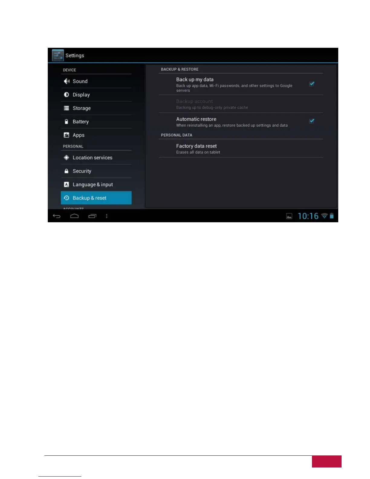 9.10 Backup & reset