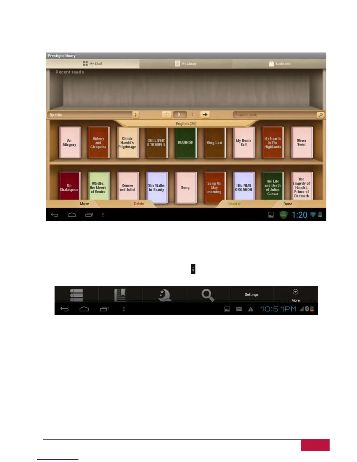 More… Open navigation panel to jump easily to any book page, adjust Brightness or set Font size with