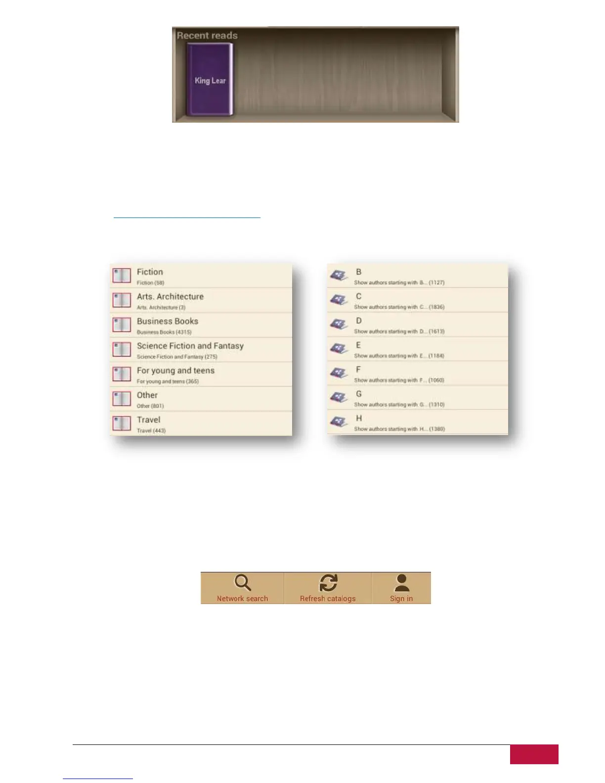 Bookstore in the device is available in the form of OPDS catalog: simple form of the books list that