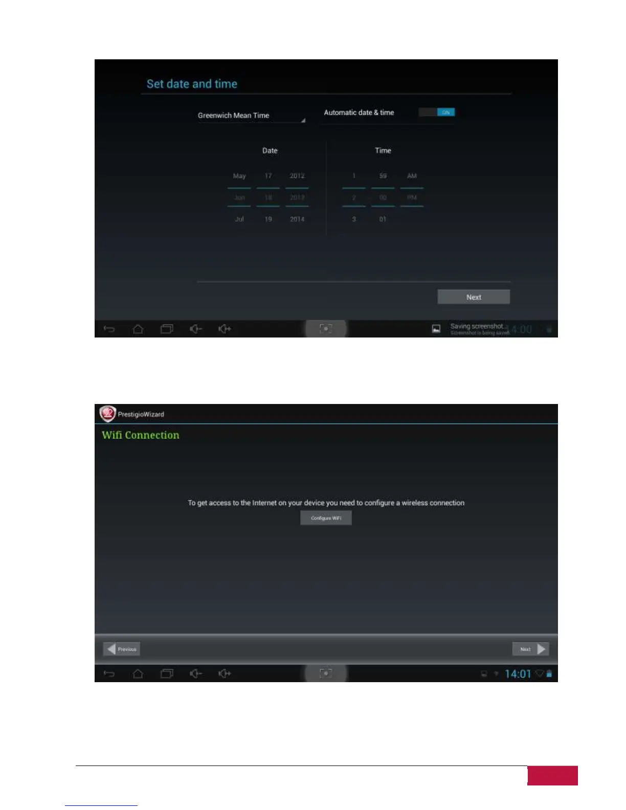 Tap Next button to continue to Wi-Fi connection screen.