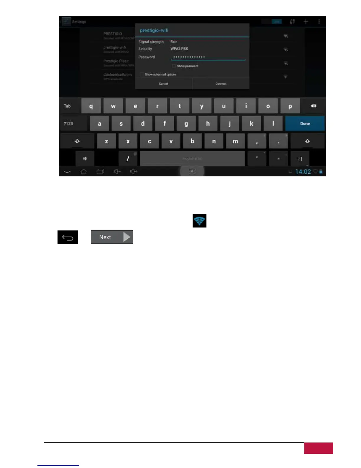 After successful connection, the Wi-Fi connected icon will appear on the status bar.