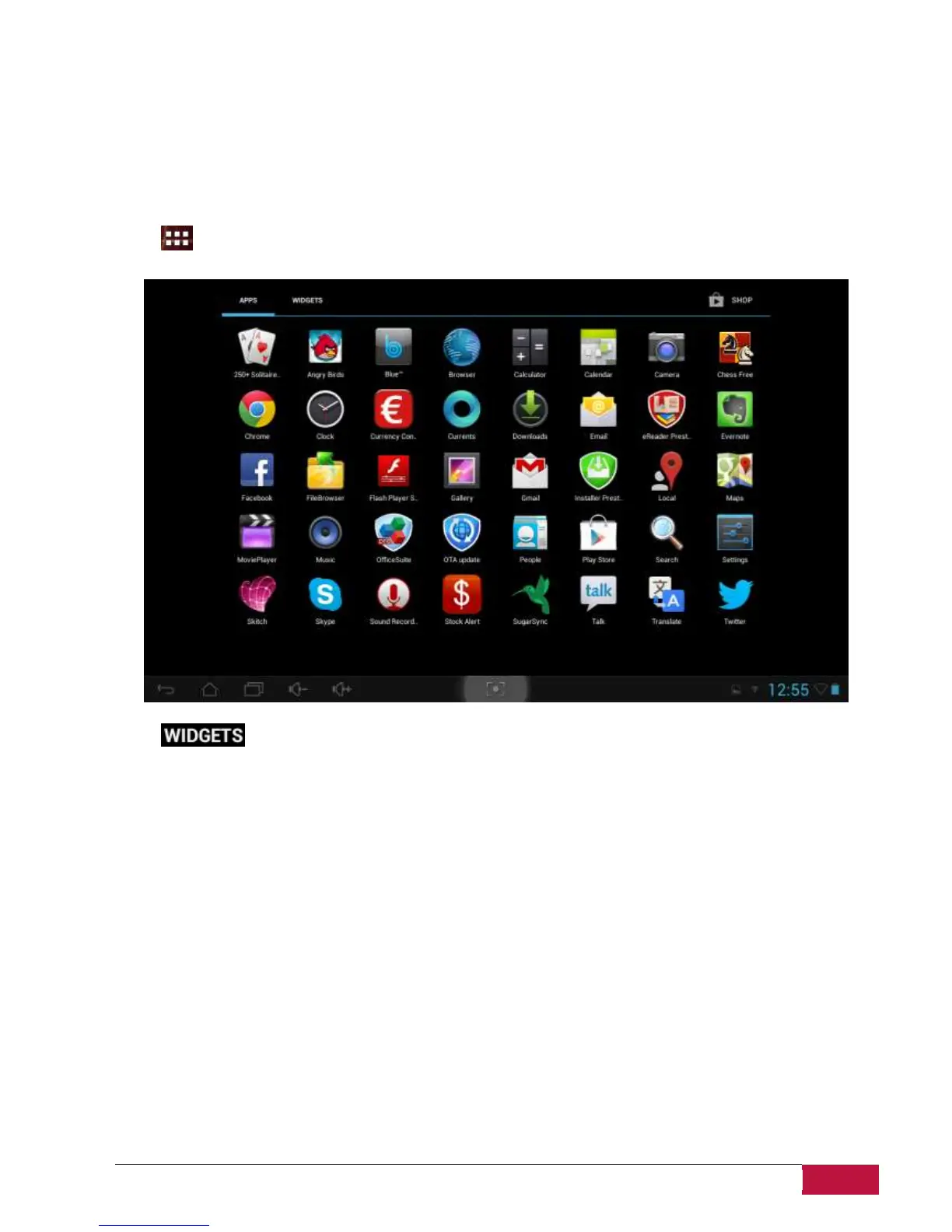 -Tap on the home screen to enter into all apps interface as follows: