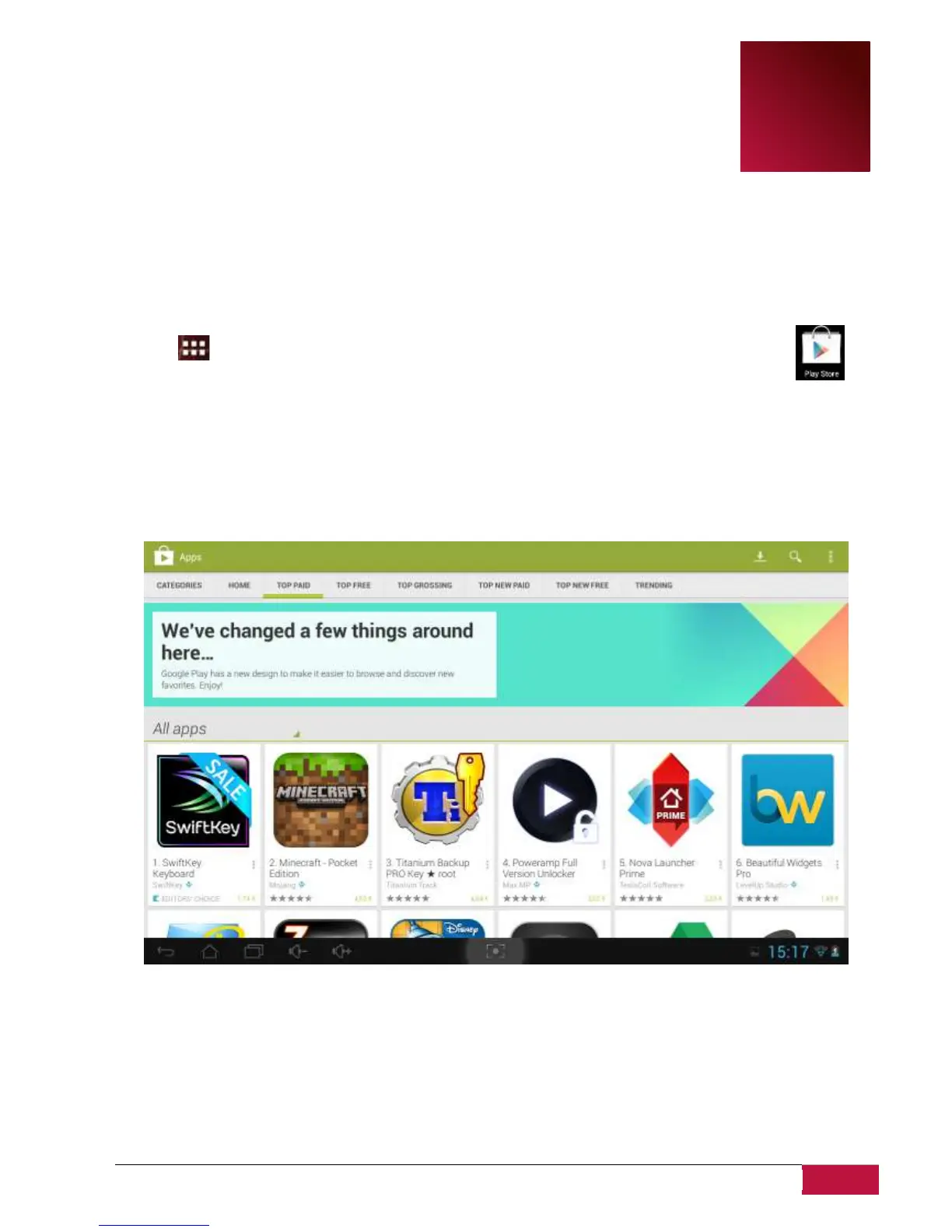 1. Tap at the Home screen to enter into all apps interface. Run Play Store application.