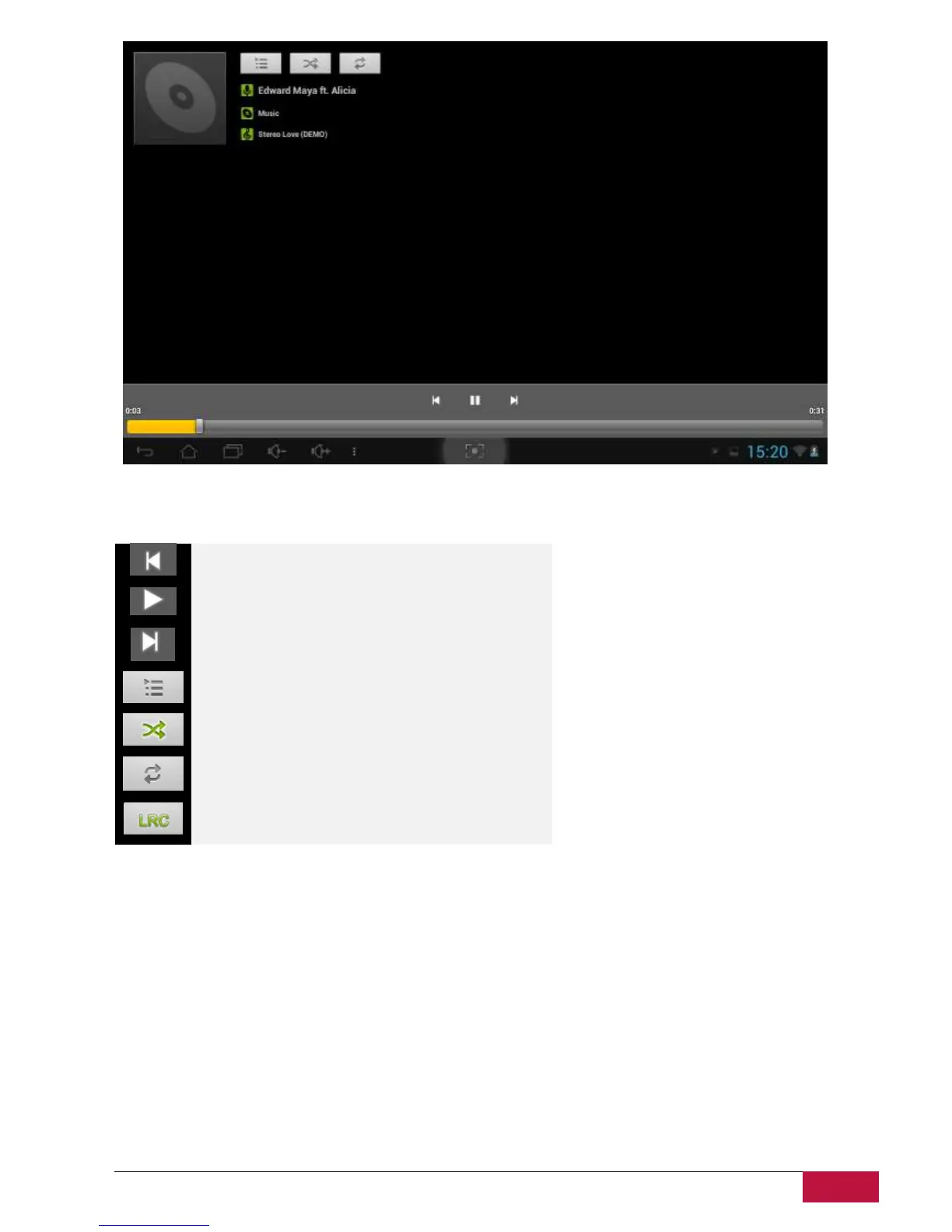 category tabs to view a category. Select a song in the playlist and tap on it to start playing as follows: