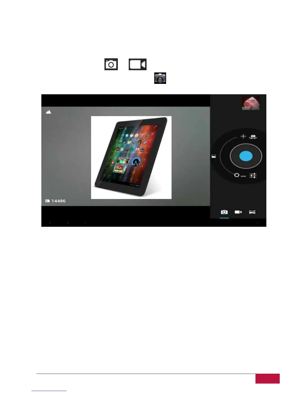 The Camera app is a combination of a camera and camcorder. You may toggle between these two modes