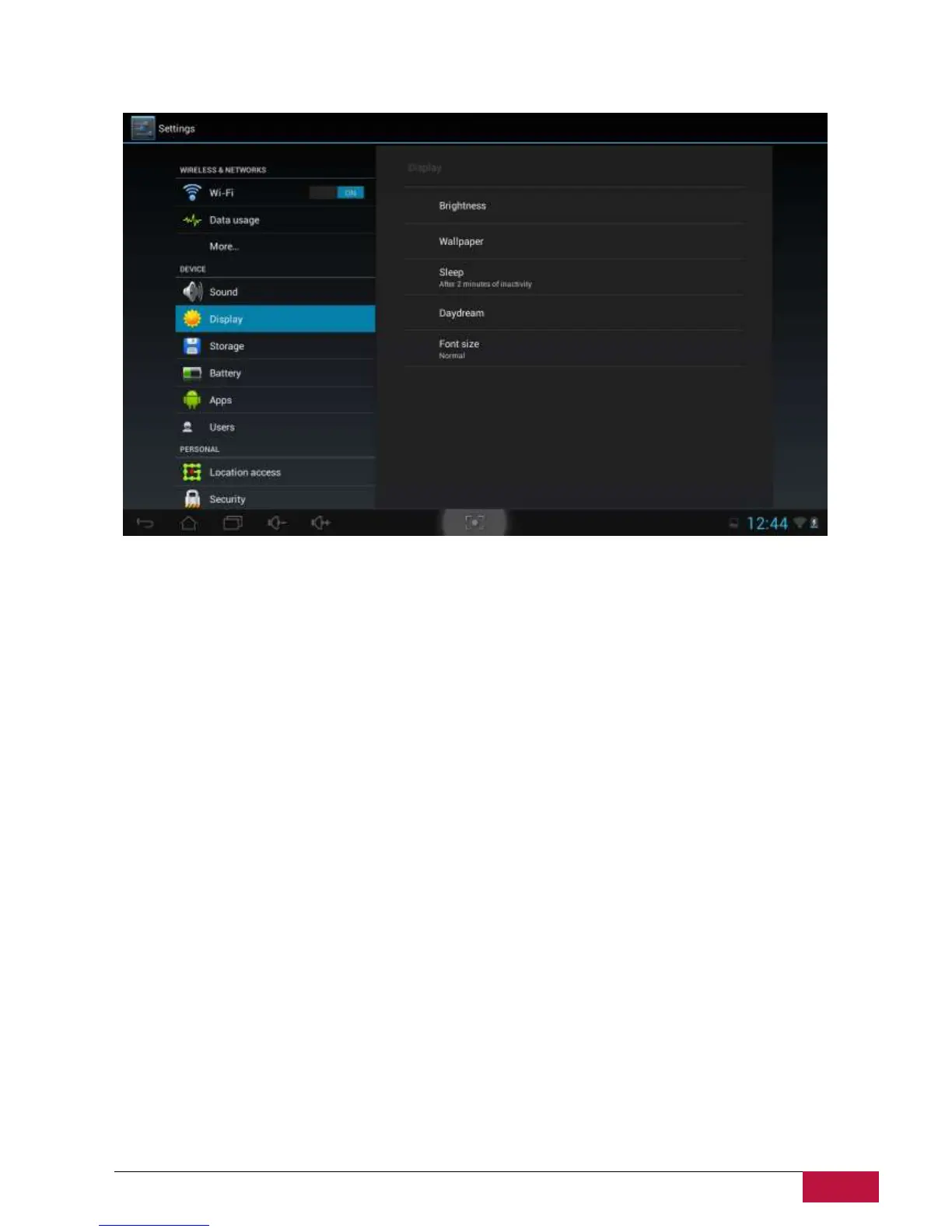 Set the screen brightness, auto-rotate option, wallpaper, screen timeout and font size.