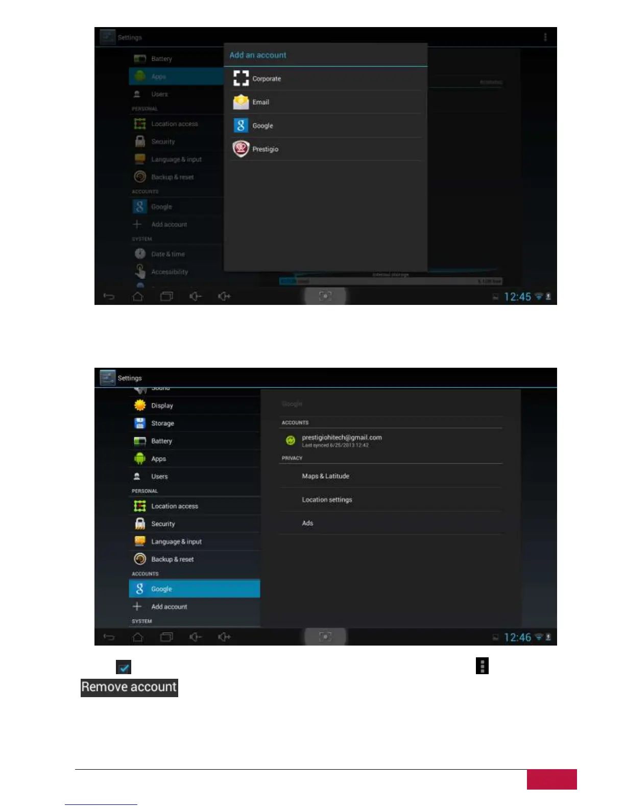 Check to turn on/off data synchronization, touch the menu icon and then tap