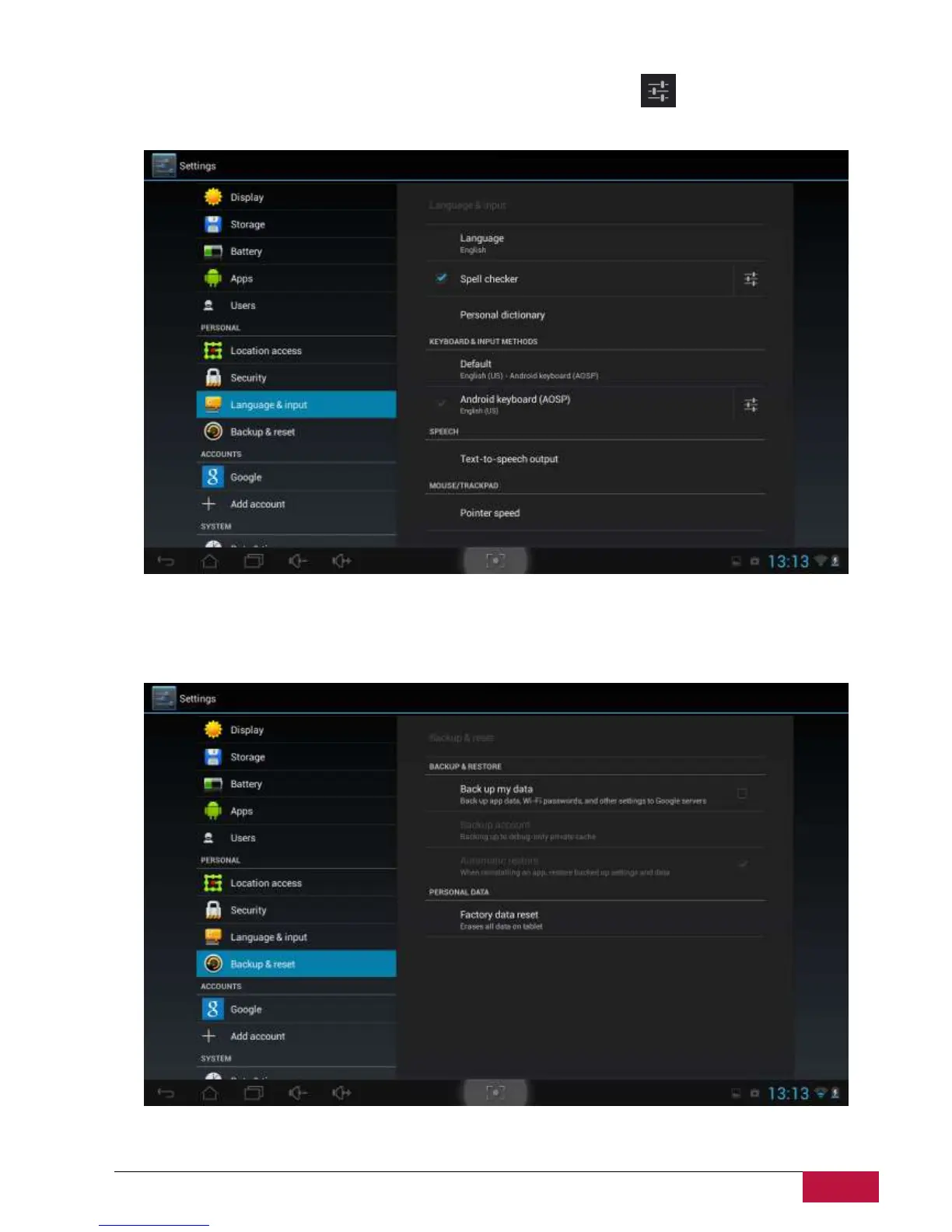 [Note]: after factory data reset, you personalizing settings and the installed third-party applications will