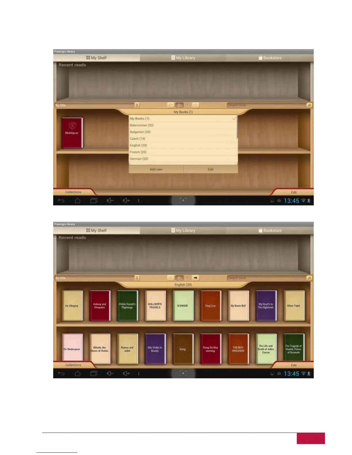 Tap “My books” to open a list of preset folders and choose the one that corresponds to your language.