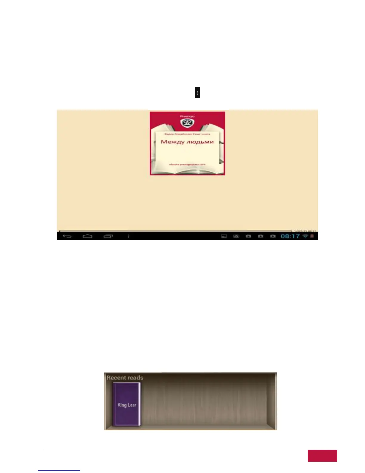 Press on the book from the shelf to continue reading from the last opened page.