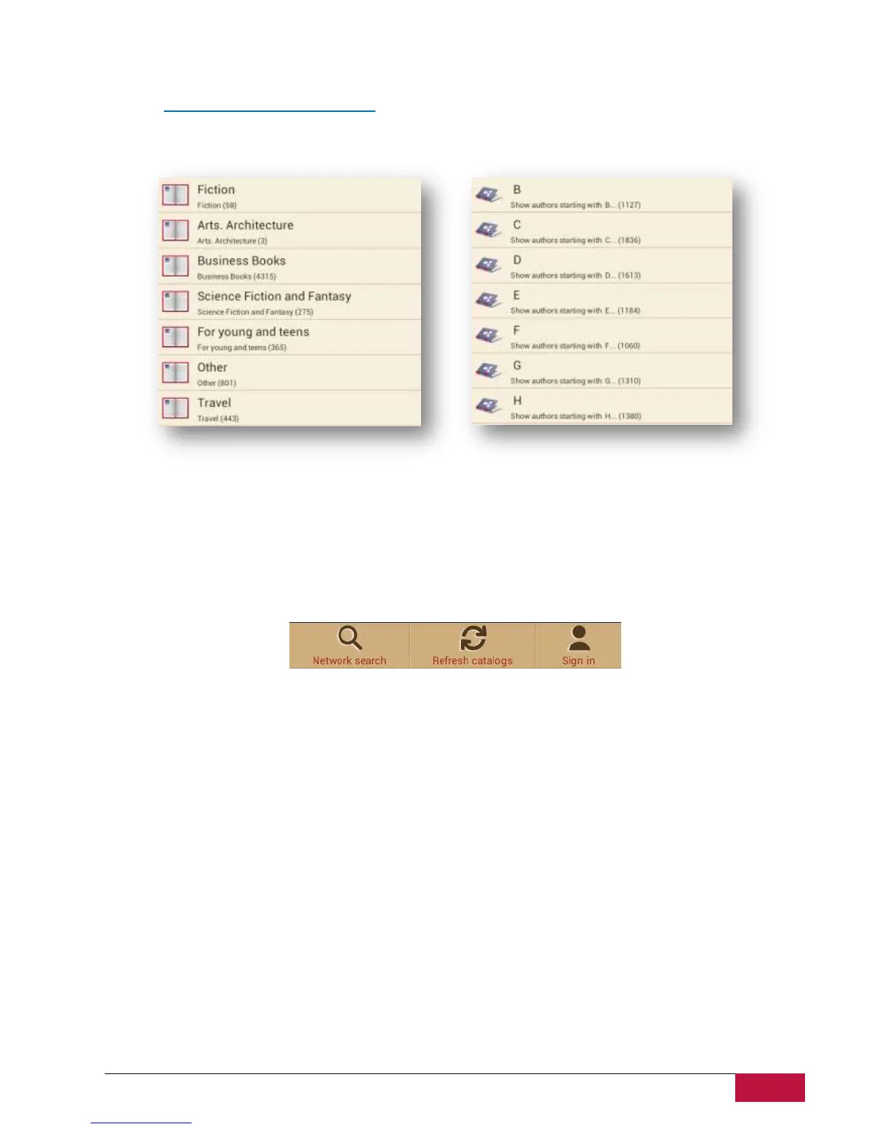 Bookstore in the device is available in the form of OPDS catalog: simple form of the books list that