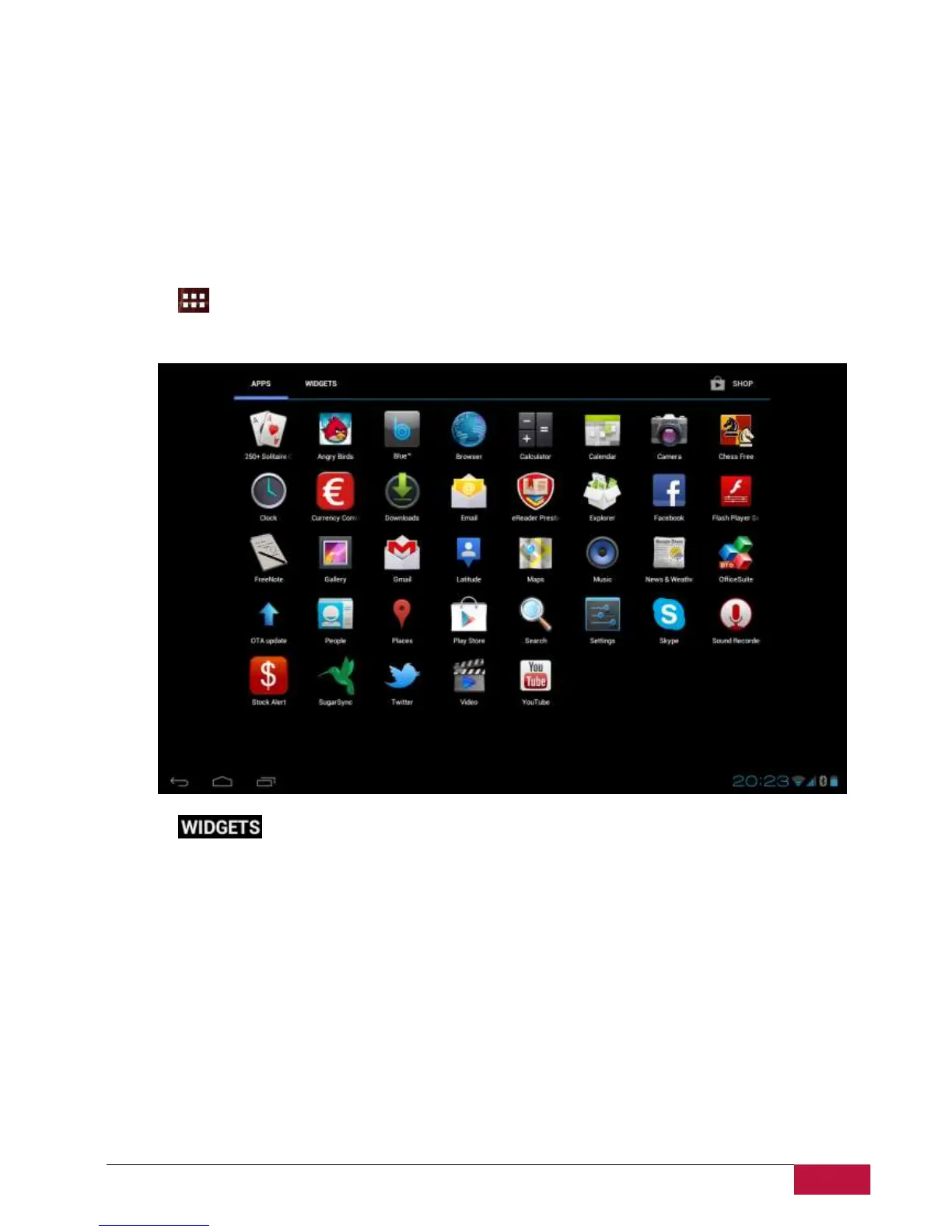 1.1 Tap on the home screen to enter into all apps interface as follows